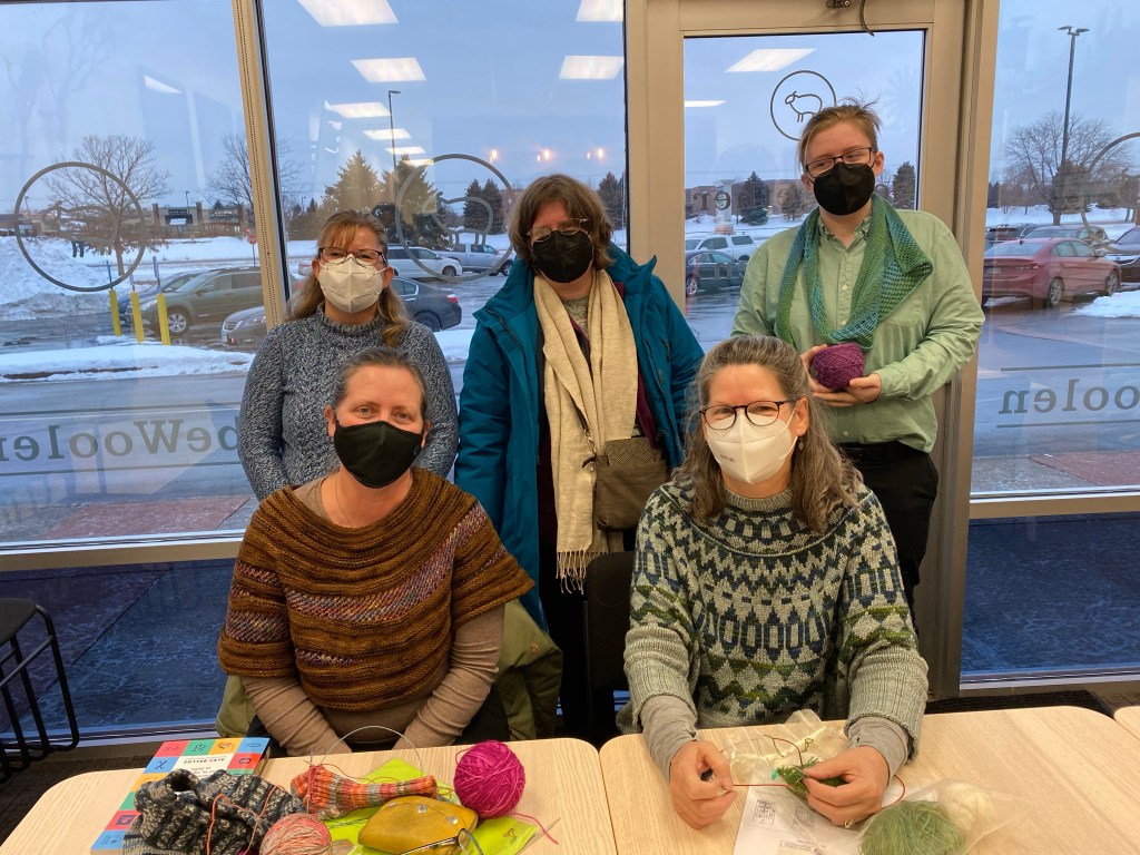 Denna stickande vän bor på östkusten, men har rötter och släkt här i Tvillingstäderna. I och med att vi ’träffas’ varje vecka via nätet, är ju fördelen naturligtvis att denna stickande väninna också kan vara med.