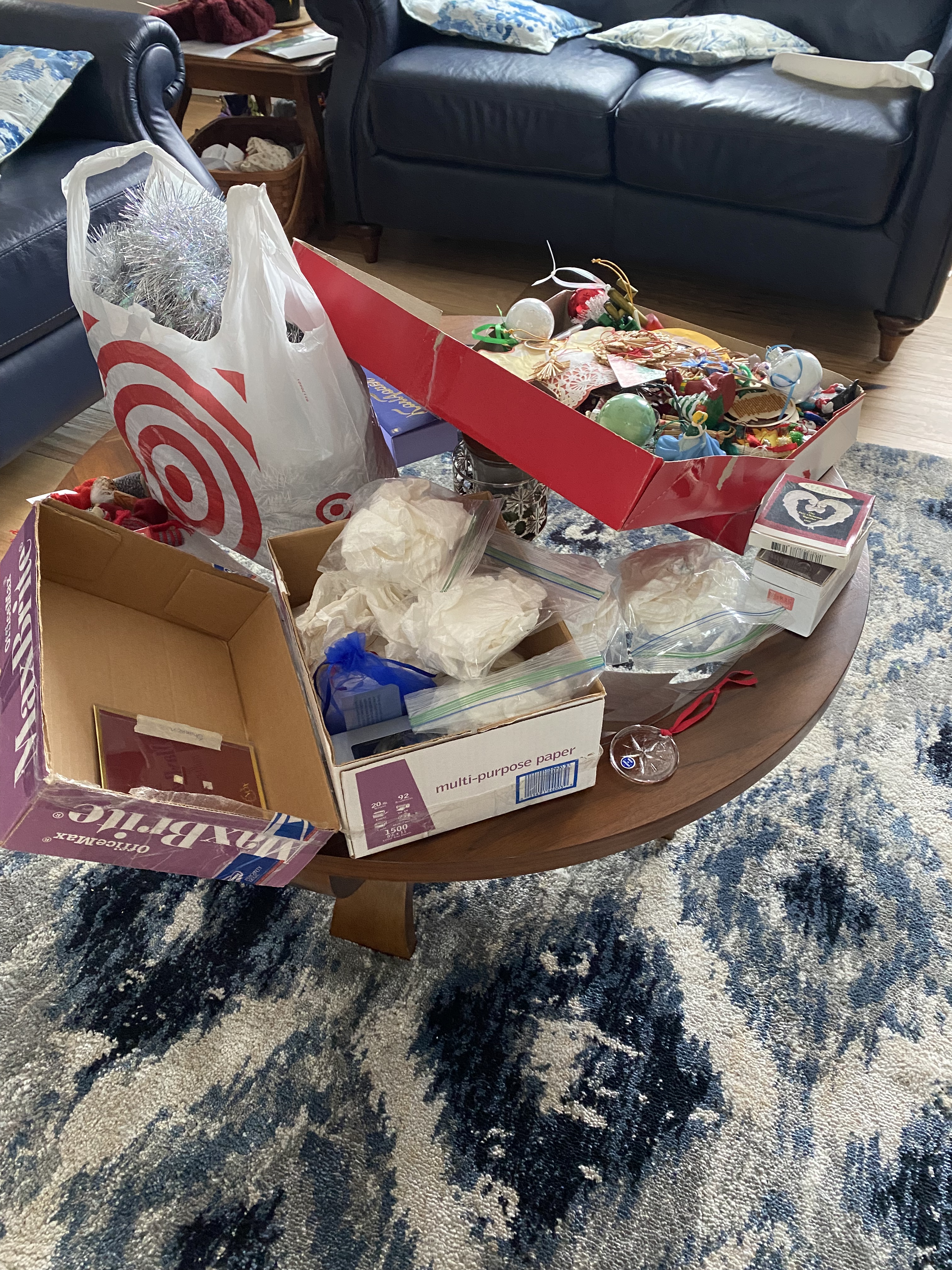 Nu hade jag fantastisk hjälp av både Maken och Dottern. Dottern åkte och handlade mat nu på kvällen eftersom jag skippade den sysslan på eftermiddagen och Maken är fenomenal på att packa upp och ihop, bära lådor och sortera bort. Julen alltså.