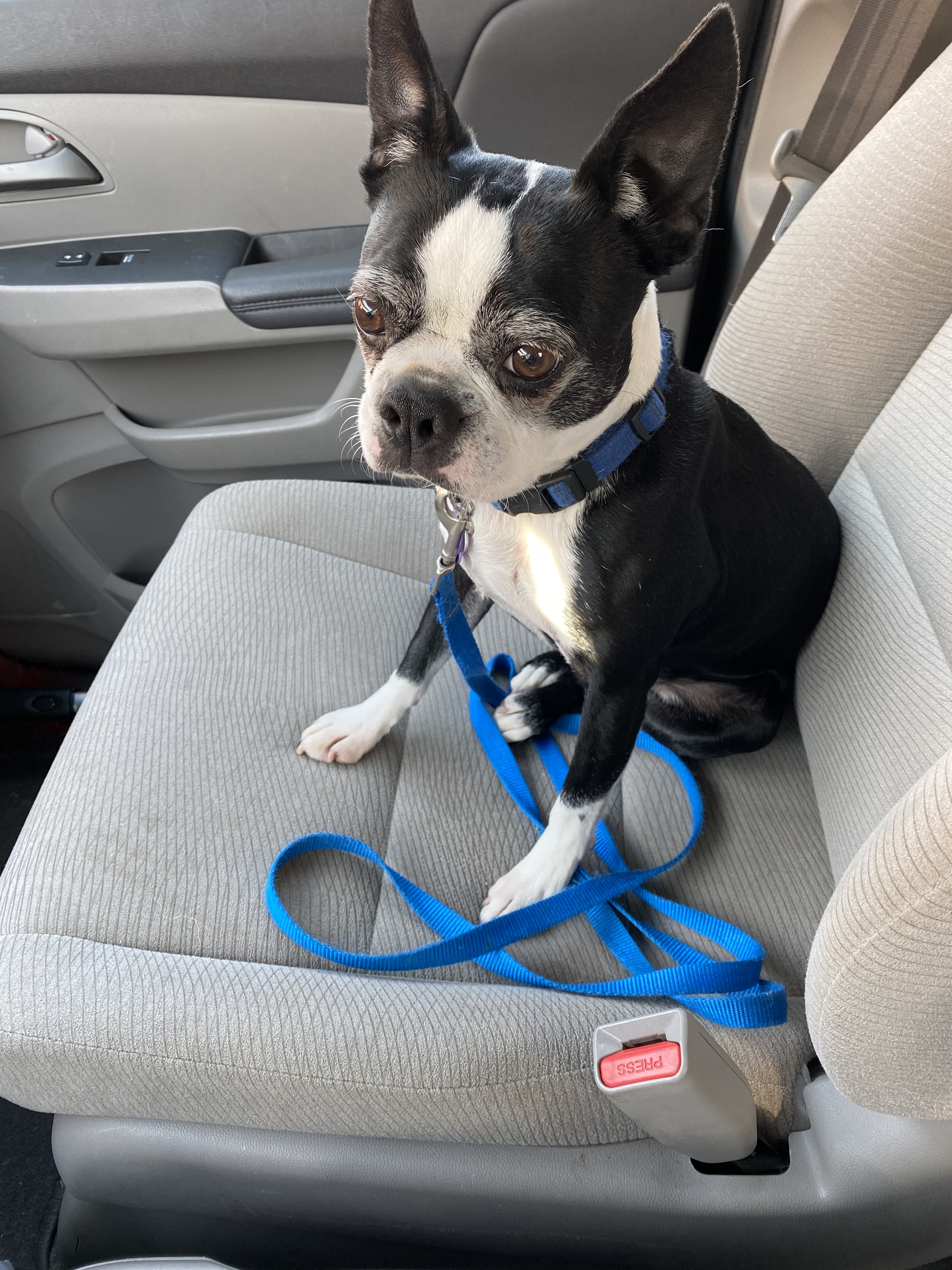 Fiona är en renrasig Boston Terrier. Här i USA har hundar av blandras sorter blivit väldigt populära eftersom renrasiga hundar ofta får problem med hälsan till följd av inavel. Och jodå, Fiona fyllde fem år i augusti, men visar redan tecken på vissa tendenser till sjukdomar Boston terrier rasen ofta drabbas av.
