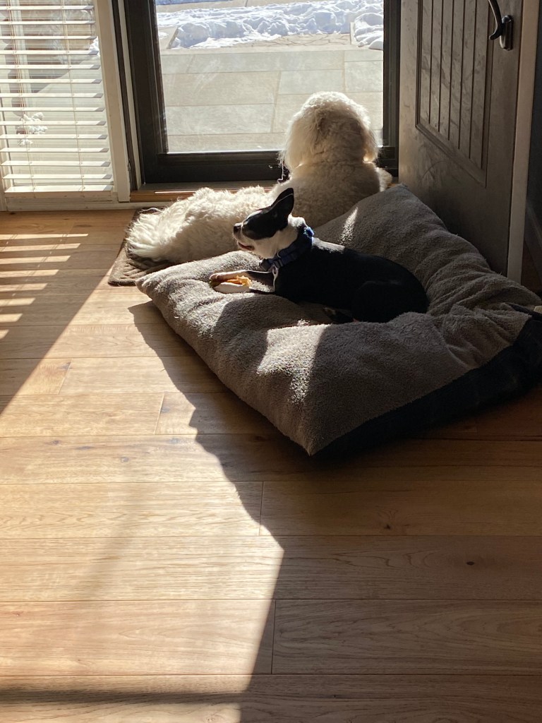 Skönt på bädden har de onekligen. Dock är den full med hundhår så jag tvivlar lite på att du vill vila där….🤔😂