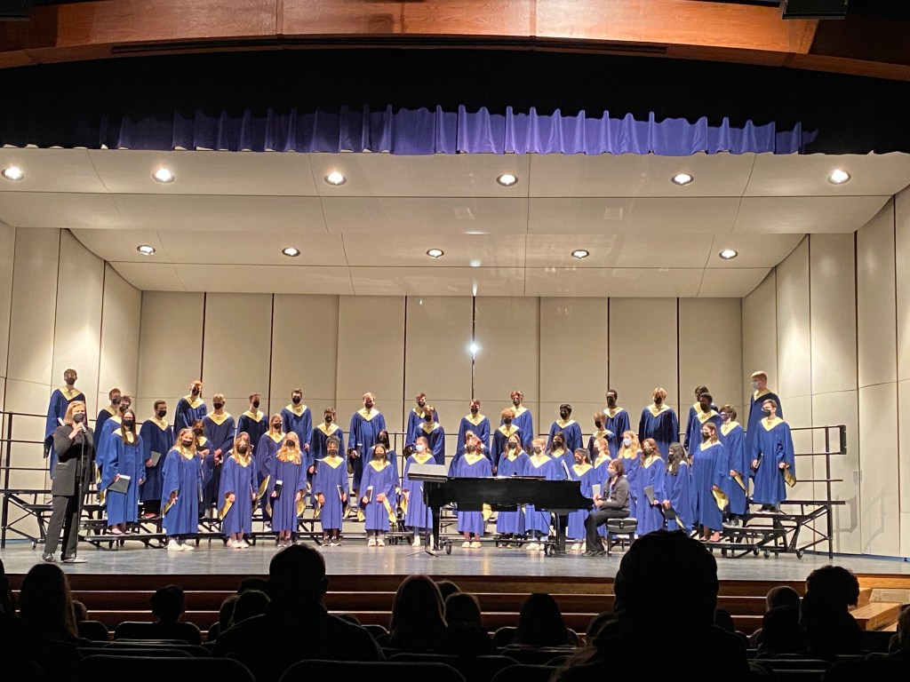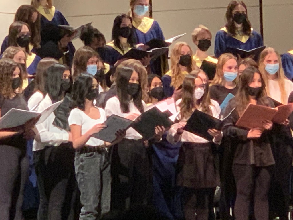 Endast två sånger sjöngs tillsammans med gymnasiets kör, men det var roligt att lyssna. Duktigt sjöngs det där på scenen bakom alla munskydd!