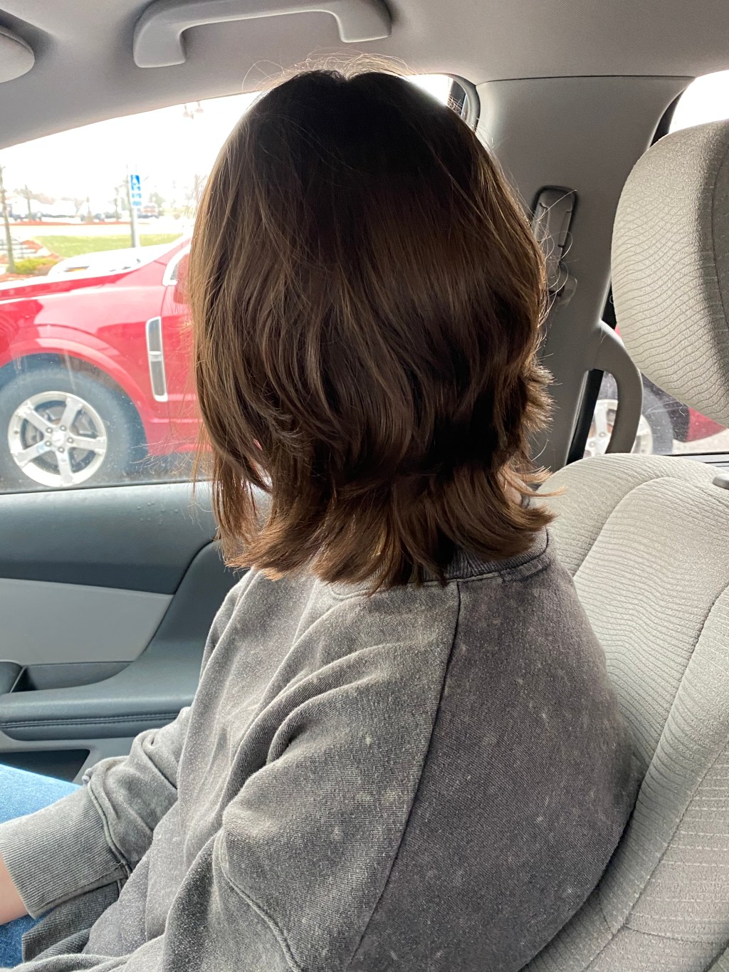 Nu kan jag inte med gott samvete säga att jag är helt förtjust i den nya frisyren, MEN som jag sade åt denna yngsta dotter. Det är hennes hår och om hon är nöjd, är jag nöjd!