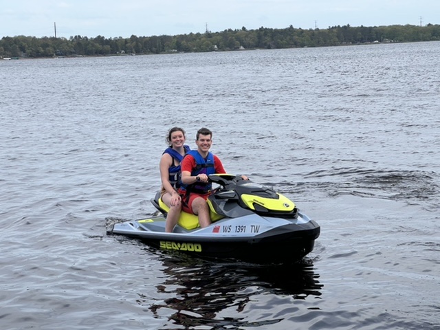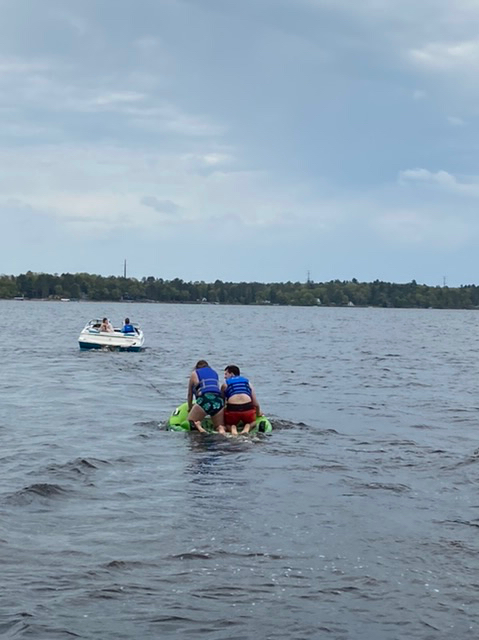 Madrass skulle det också åkas trots kyliga temperaturer både i luften och i vatten. Vindarna blåste nog en aning för hårt och Sonen med Flickvän på madrassen vurpade. Sonen slog i höger arm och nacke ordentligt och så blev det med det åkandet. Inget brutet tack och lov , men smärtstillande och lugnare aktiviteter resten av dagen.