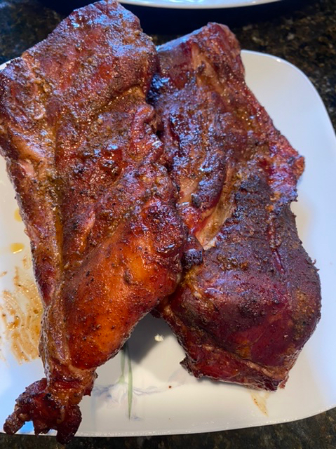 På söndagen skulle vi då testa detta rök-och grillmonster och det blev revbensspjäll som testades allra först. Det gäller att ha tid att använda denna mackapär för tillredningen av nämnda revbensspjäll tog 5-6 timmar…. Goda var de dock verkligen och faktiskt alldeles värda tiden det tog att röka dem!