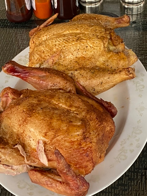 WOW vilka kycklingar! Om jag ska vara helt ärlig så har jag inte grillat hel kyckling på ja, jag vet inte på hur många år :-O Men ser dundrandes gott ut 🙂