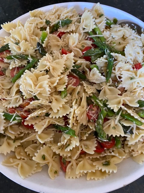 Eftersom det varma/heta vädret fortsätter så fortsatte jag med temat sallad idag på middagsbordet. Enkelt, lätt och gott att ta till sig i den 30 plus gradiga värmen. Det blev en kall pasta sallad med ( kokt) grön sparris, riven parmesan ost och körsbärstomater på middagsbordet denna varma onsdagskväll. Dressingen består av saften från en citron, hackad basilika schalottenlök, en vitlöksklyfta , salt, peppar och olivolja. Enkelt och gott.