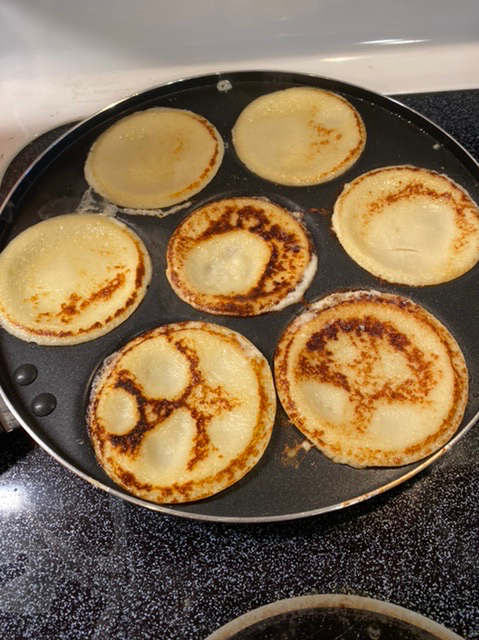 Det sköna med detta ostadiga väder för min del, är att jag inte känner mig tvingad att vistas utomhus. Istället har det blivit en del gjort i köket. Som plättar (tunna pannkakor i Sverige kanske?) till exempel….