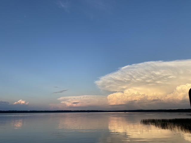 Inga planer har vi annars under denna sista sommarhelg. Bara vara och njuta. Möjligen så småningom börja ta in bryggan , vi får se….. Det var ar ändå hela 28 grader varmt idag. Svårt att tänka sig att sjön kan vara täckt av is om 6-8 veckor…. fast här i Mellanvästern råder det ofta tvära kast i vädret. Det är bara att vänta och se när de första vita flingorna singlar ner och minusgraderna är ett faktum…..