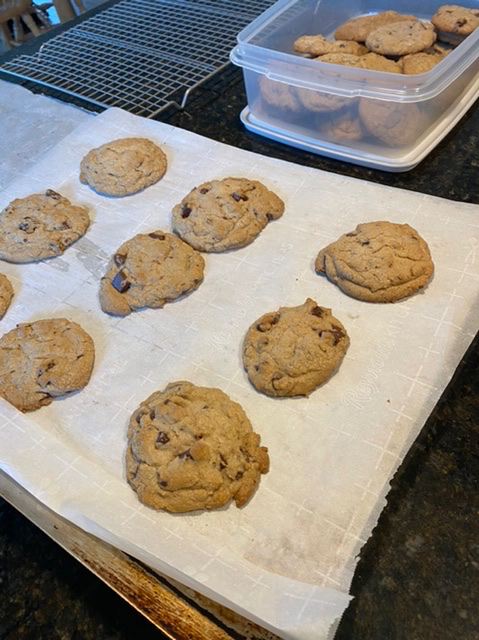 …eftersom jag bor med två kakmonster var det åter nästan slut i kakburken och mor i huset ställde sig en stund i köket på eftermiddagen när det ännu var mulet och ypperligt väder för bakning. Innan stickningen kom fram alltså. Denna gång fick samma slags kakor mera mjöl i sig och enligt mina två kakmonster blev de visserligen mindre till storleken men godare. Då så!