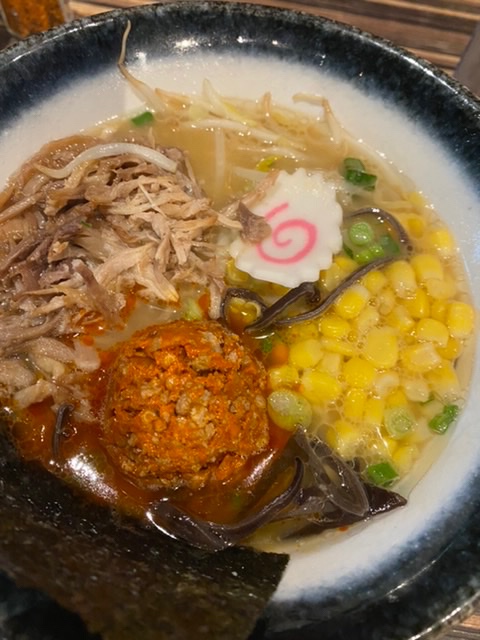… däremot var både Maken och Lillasyster nöjda med lördagskvällens besök på japansk Ramen restaurang i Förorten. Har ni ätit Ramen någon gång, eller japansk nudelsoppa? Standard i soppan är nudlarna och buljongen, men sedan kan allt möjligt annat blandas i. Jag valde en variant med griskött, majs, salladslök och en köttbulle i min buljong med nudlar medan både Maken och Lillasyster hade lite andra varianter och ingredienser i deras. På menyn stod det också ‘hot and spicy’ på soppan som jag valde, men jag måste säga att det nog inte var så farligt med det.