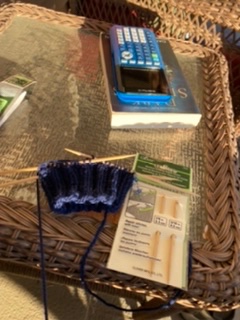 Naturligtvis stickades det utomhus denna soliga eftermiddag efter att Lillasyster och jag hade kört omkring och uträttat en del ärenden. Medan jag stickade betade hon av en del av läxberget iför den kommande skolveckan. Matematik och geometrins underbara värld.