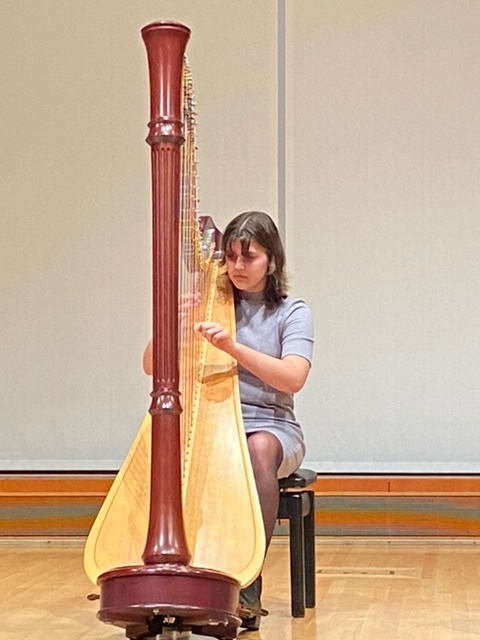 Lillasyster och henens harpspelande vänner vid musikinstitutet gav en konsert på söndags-eftermiddagen. Denna gick över förväntan. Lillasyster var nog nervös berättade hon. Det är ju ganska länge sedan hon och de andra spelade inför en riktig publik. Alla konserter har ju getts via zoom de senaste två åren. Men igår söndag var det alltså dags för en riktig konsert igen.