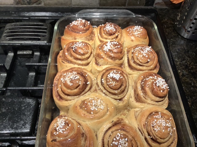 Dessa kom precis ur ugnen och hela huset doftar alldeles underbart. Passade utmärkt att baka en liten sats kanelbullar medan snön fortsätter att singla ner denna eftermiddag i november…..