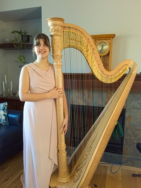 På lördagen blev. Det dags för harpkonsert hemma hos oss. Lillasyster har kommit igenom ett till häfte med musik i Suzuki metoden att lära sig spela ett instrument och då hör det till att man ger en liten konsert. Inbjudningar hade blivit utskickade till höger och vänster och även en zoom länk. Vi hade mera publik via zoom än hemma, och allt som alt var vi väl ca.30 personer som fick njuta av vacker musik och Lillasysters duktiga arbete. Tack till er som loggade in! Ingen nämnd och ingen glömd!