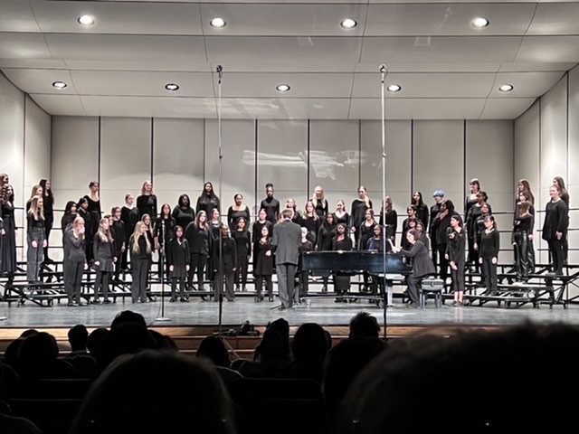 Det var Lillasysters första körkonsert i gymnasiet och det gick riktigt bra. Hennes kör syns på bilden ovan och Lillasyster befinner sig allra längst bak, tredje från höger. Bland alterna. Precis som hennes äldre syster gjorde under hennes tid i gymnasiet.