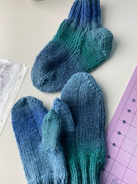 … ett till par vantar och ett matchande par sockor (endast en socka var klar på bilden) är klara.