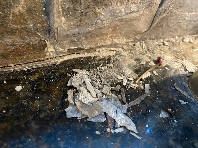 Ett kakel hade kommit av väggen så här långt,. Men som ni ser var murbruket mer eller mindre sönder-vittrat . Det skulle krävas nytt kakel och nytt murbruk.