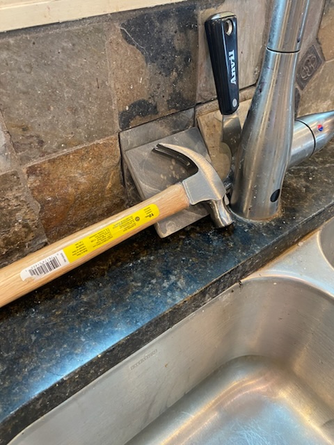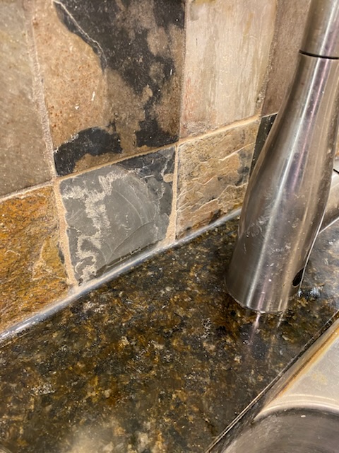 Kaklet bakom diskhon och under fönstret i köket behövde fixas! Vatten är ett ‘double edged sword’ som det heter på mitt andra språk. Alltså vatten är både bra och dåligt. Nödvändigt för dagligt bruk och levnad, men inte alls bra om det tar sig in bakom kakel i köket och på väggen bakom.