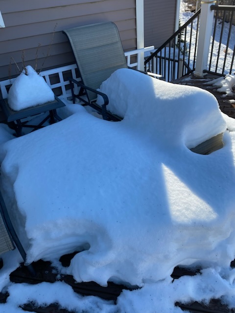 Solstolarna på baksidan av vårt hem är ännu täckta i ett tjockt lager med snö. Ändå är det nog inte så länge innan jag jag slår mig ner med stickningen här på eftermiddagen. Förhoppningsvis får vi en varmare vår än de nya normala som är så blöta och kalla. Då jag först flyttade till Minnesota gick vi normalt i shorts i slutet av mars! Inte nu längre!