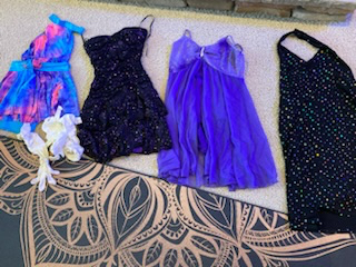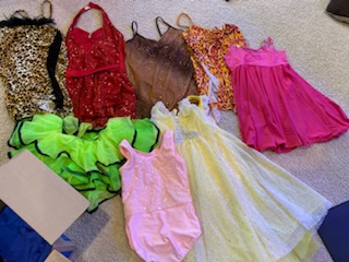 Danskläder från åren flickorna var med i jazz, balett och lyrisk dans.