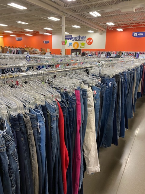 Lillasyster hittade lite allt möjligt och gick ut ur loppis butiken med famnen full. Två par jeans, två toppar etc.