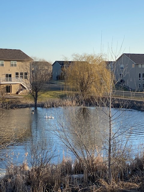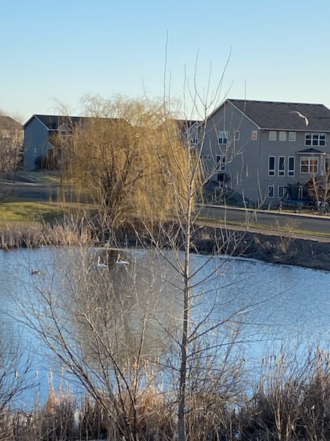 Inte ett, utan två par svanar landade på den nu öppna dammen bakom vårt hem denna morgon. Det skränas och trumpetas och det tog inte länge förrän det senare ankomna paret jagade bort det första. Svanar kommer inte speciellt bra överens med andra svanar och Kanadagäss har vi kommit fram till under dessa år med denna damm som granne.