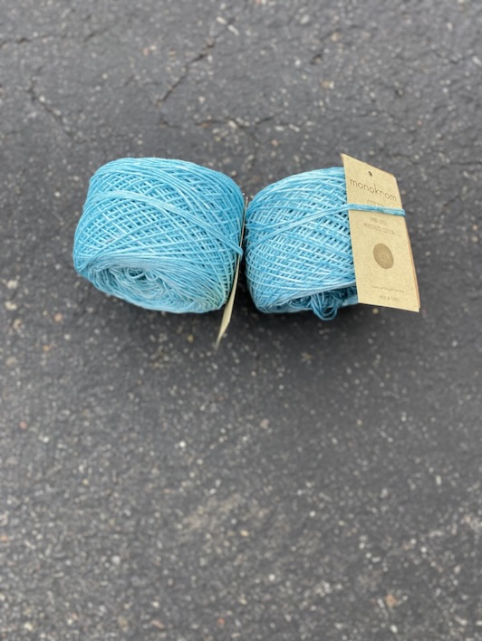 Garn inhandlat i lördags…. Började på en sjal med detta turkosa garn i bomull.