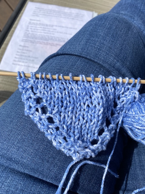 Medan Maken slavade i köket hade jag stränga order att göra det jag ville denna morsdag och inte hjälpa honom. Och vad ville jag ju då göra…? Jo, men ni behöver väl knappast gissa två ggr…? En ny liten disktrasa är på gång med lite ändrat mönster och det var så härligt att sitta ute i solen och njuta åter efter, som sagt, flera dagars ihärdigt regnande.