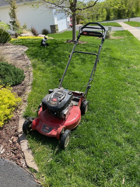 Jag kunde liksom inte hålla mig två veckor till. Gräsmattan bara måste klippas och i förmiddags efter träningen tog jag tag i saken. Förhoppningsvis har alla äggs kläckt som lär finnas i gräset för jag frågade inte lov av alla småkryp…..