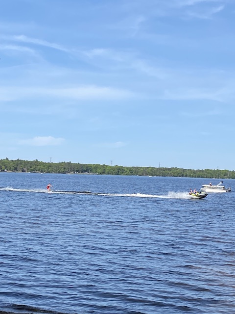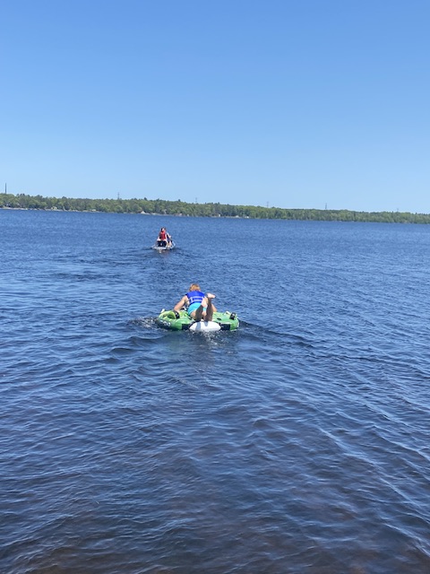 Det åktes madrass efter vattenskotern eftersom vi ännu inte hade vår båt denna sista helg i maj.