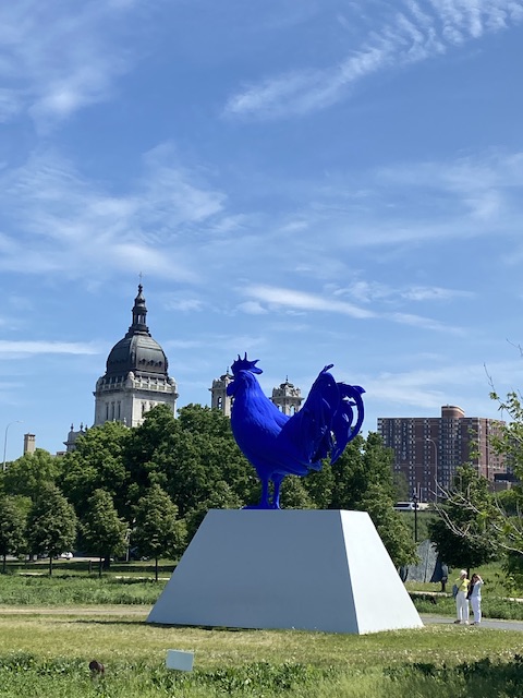Den blåa tuppen hade visserligen en fin färg…. Basicilica of St. Mary inne i Minneapolis syns i bakgrunden.