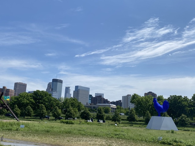 Efter en trevlig helg återvände vi hem till Förorten och spenderade gästernas sista dag under besöket i skulpturparken i Minneapolis. Det blev en trevlig utflykt. Det var länge sedan jag var där och Maken hade faktiskt aldrig varit där. Nu är jag inte ngn konstkännare precis och jag måste säga att den ena skulpturen var märkligare än den andra….