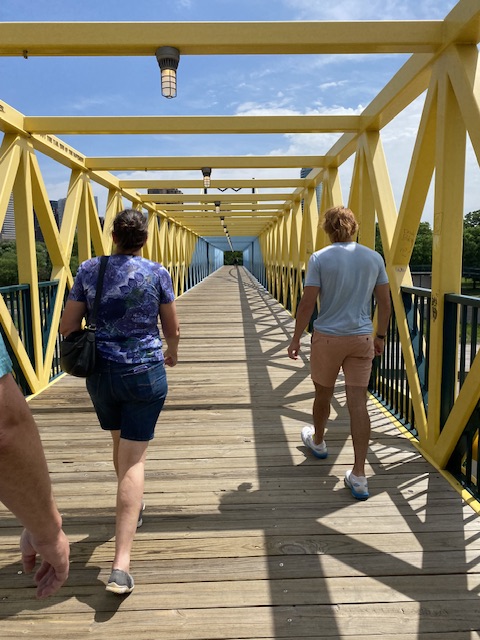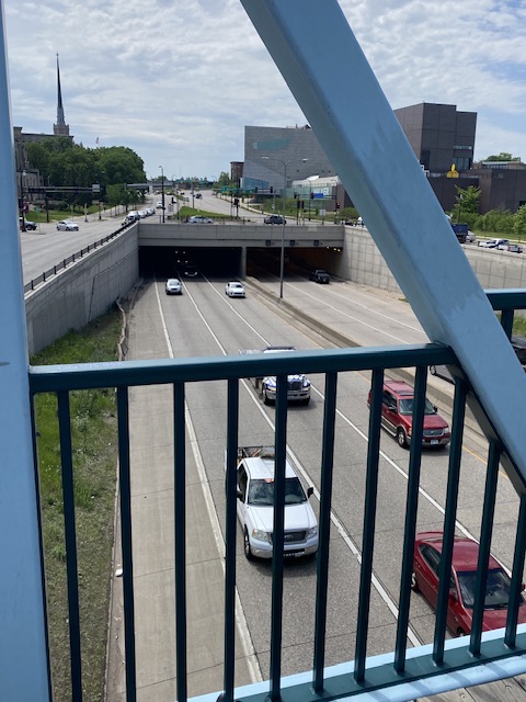 Svägerskan med Son traskar över bron över motorvägen till Loring park….