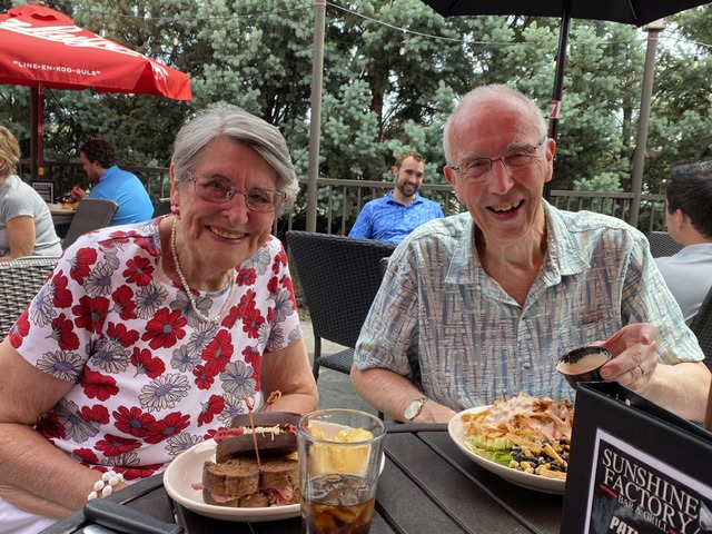 De andra i sällskapet var lika nöjda med sin mat och det blev en trevlig stund utomhus under parasollet.