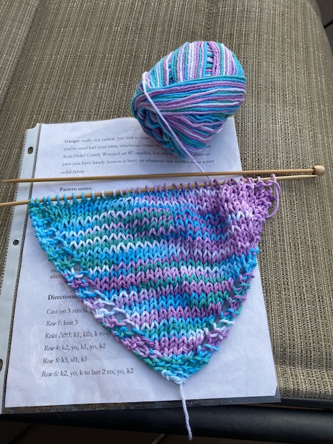 Trettiosju maskor och en och en halv timme och voilà! En ny disktrasa i bomull är född! ( den som jag stickade igår kväll åt Värdinnan var en precis likadan som denna.)
