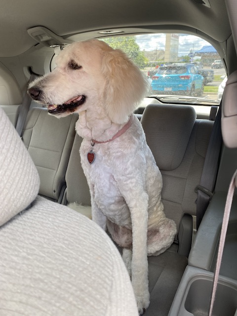 En nöjd och glad hunddam på väg hem igen efter morgonens klippning. Visst var hon en aning nervös när hon ställde sig på vågen vid hundfriseringen för vägningen, ( 22 kg för denna hunddam idag.) men eftersom hon hade beställd tid med duktiga och proffsiga Renée som nu klippt henne i flera års tid, försvann nervositeten ganska snabbt. Lilly till och med lyfte på svansen och viftade på den lite försiktigt när Renée toga tag i kopplet och ledde henne till ett av de bakre rummen. Tre timmar senare hämtade jag denna hunddam och hon var så fin. Dessutom hade hon ögon att se med igen eftersom de inte längre var gömda bakom all päls och är man halvt om halvt döv, hjälper det onekligen att ha ögon att se med då familjen ropar på en och vinkar med händerna för att visa att hon skall komma.