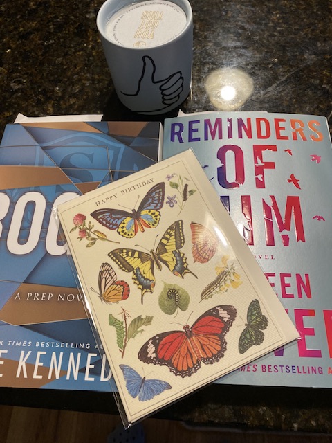 Böcker, levande ljus och ett kort med fjärilar för en blivande 20 årig Flickvän…..
