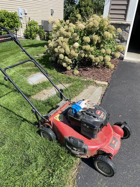 … i förmiddags ändå med 27,2 plusgrader då jag gick omkring med gräsklipparen i det mycket långa gräset. Jag hade bett Sonen klippa gräset tidigare i veckan, men efter hans långa arbetsdagar ute i hettan, orkade han helt enkelt inte ta sig an vår gräsmatta i den höga värmen på eftermiddagarna. Förståeligt . Alltså tog jag hand om saken istället. På förmiddagen innan den den värsta hettan, märk väl.