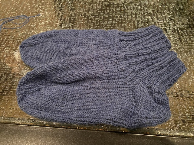 Stickade klart detta par sockor också. I tunt, italienskt garn på smala tandpetare till stickor. Nu är det gjort i alla fall! De kunde ha blivit bättre, men de kunde också ha blivit så mycket sämre, så jag är nöjd!