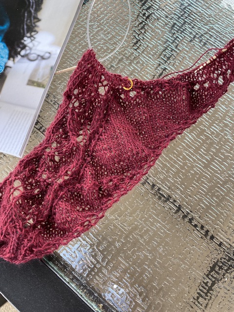 Det gäller att hålla tungan rätt i mun och föra anteckningar över var i mönstret jag befinner mig. Nu är det kväller, nästan natt och jag är sgs halvvägs med denna sjal! Så kan det gå när ett nytt mönster intresserar…. !