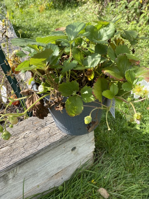 Så här såg en av jordgubbsplantorna ut i kruka innan jag planterade den i jorden.