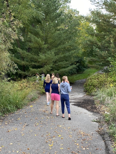 Här springer flickorna i förväg ner till sjön och lusthuset för fotografering medan vi föräldrar följer efter i ett mera normalt tempo!