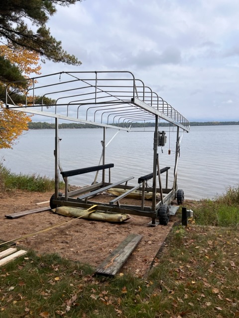 Maken jobbade hårt vid stugan denna helg och har alldeles ensam tagit 30 m brygga ur vattnet. Flutit den jättelika båtställningen upp på min lilla strand och staplat allting snyggt till nästa vår. Tack och lov var det inte lika varmt där i norra Wisconsin som det har varit hela helgen här i Tvillingstäderna.