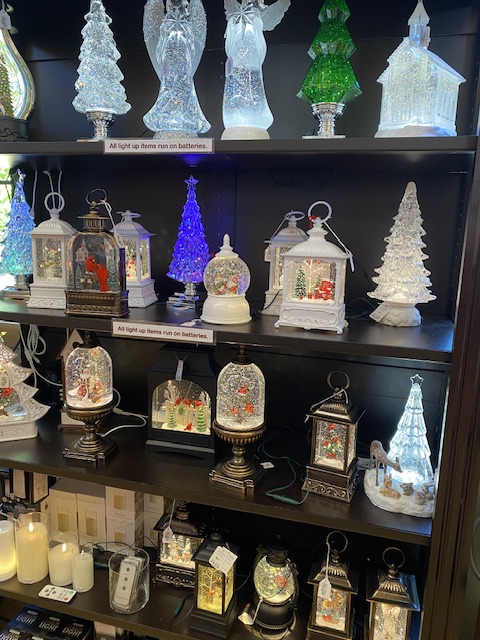 Denna hylla var så fin och imponerande i den lilla butiken, men naturligtvis blev den inte lika fin på bild! Det handlar om olika snöglober som lyser och som man kan använda som julprydnader. Väldigt, väldigt fina var de!