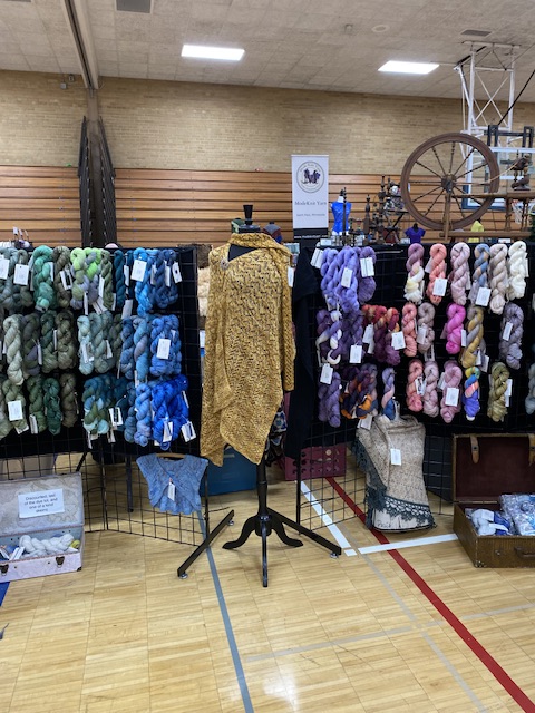 Fyrtioen utställare hade samlats i skolans gymnastiksal och det fanns en hel del att strosa bland och titta på. Trevliga utställare som gärna berättade varifrån de kom och vad de jobbade med. En del hade egna får och alpackor och spinner sitt eget garn. En annan hade 80 stycken lamor på sin gård som han spann garn utifrån. Alla som ställde ut sina garn och alster var från Minnesota och delstaterna här runtomkring.