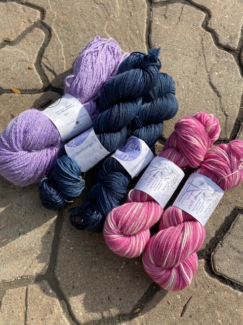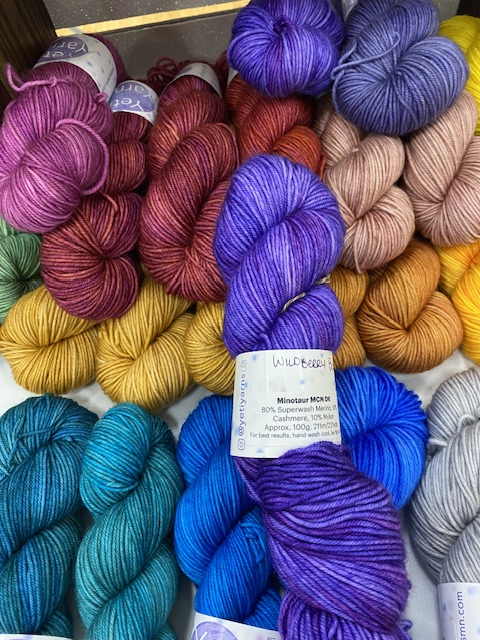 Jag drogs helt enkelt till de mera färgstarka garnen. Kvinnan vid detta stånd färgar garn och använder vattenfärger! Duktig är hon verkligen! Jag sökte upp henne på nätet efter att hemkomsten och det går att beställa garn av henne också! Kul! Jag köpte två nystan av henne innan jag fortsatte till två andra stånd där garnen såg så vackra ut.