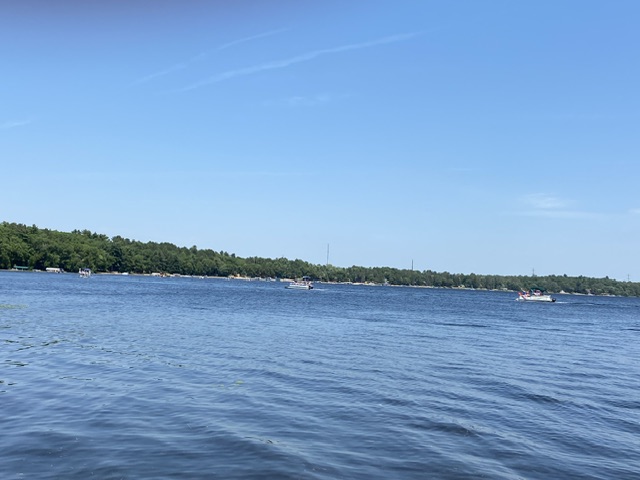 Båtparad ordnas på vår lilla sjö vid stugan i Wisconsin på USAs nationaldag den 4.7 och efter mörkrets inbrott festas det och skjuts raketer runtom sjön. Bilden tagen sommaren 2021.