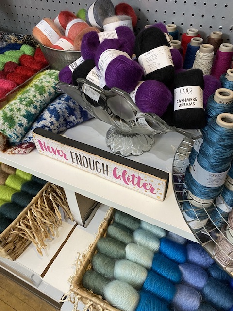 Det fanns garn i mängder! I olika material, färger, former, tjocklekar…. Det fanns en hel del färdiggjorda projekt att beundra och titta på: Sjalar, mössor, halsdukar, tröjor, vantar…. You name it.