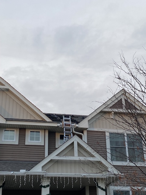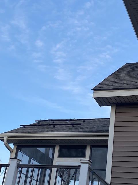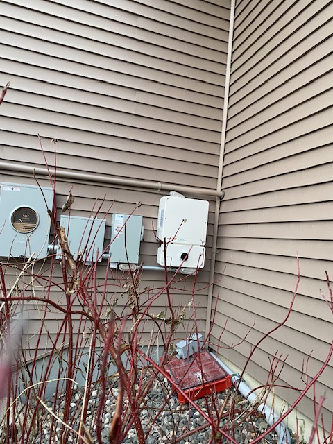 Ställningarna är på plats för att installera solpanelerna och på bilden ovan ses den nya elmätaren bakom vårt garage.