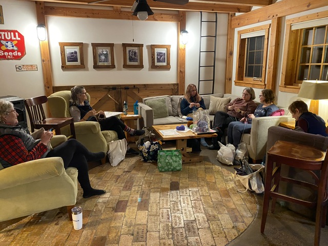 Efter den gemensamma måltiden kom garnet och stickorna fram….